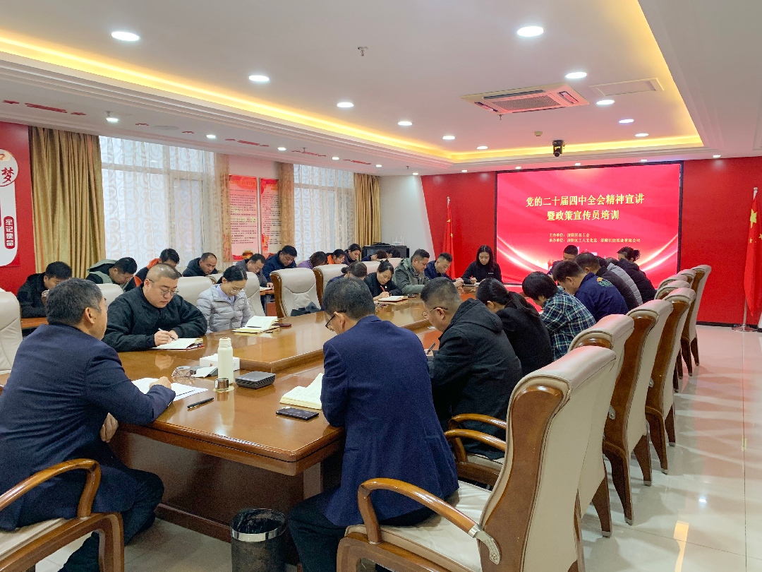 二十屆四中全會精神專題宣講會在華百廣場五樓會議室隆重舉行。濟(jì)陽區(qū)商務(wù)發(fā)展促進(jìn)中心黨組書記、主任杜峰作宣講,長田實(shí)業(yè)副總經(jīng)理、華百廣場總經(jīng)理成峻志主持,公司全體黨員及職工代表齊聚一堂,沉浸式學(xué)習(xí)全會精神、共商發(fā)展新路徑。