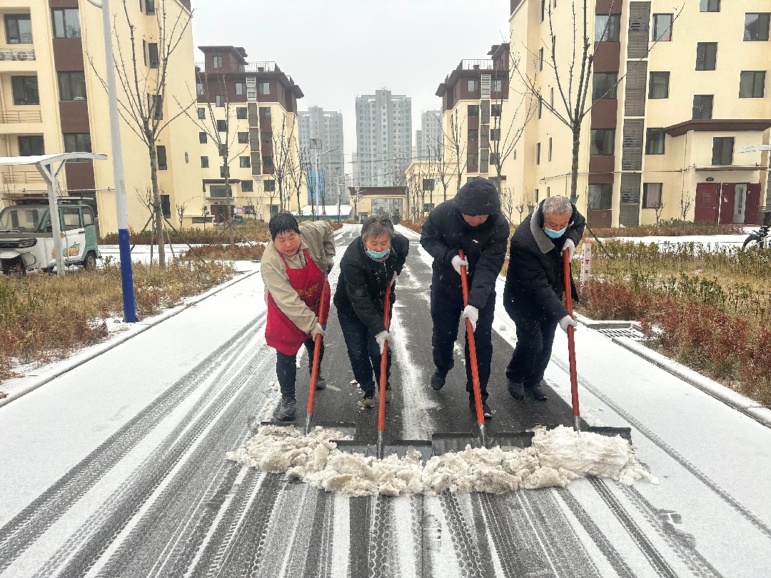 長田物業(yè)北城花園項目部,鼓風(fēng)機轟鳴作響。以速度對抗嚴寒,用設(shè)備助力清雪,積雪消融處,是暢通無阻的坦途,更是刻在骨子里的擔(dān)當(dāng)。